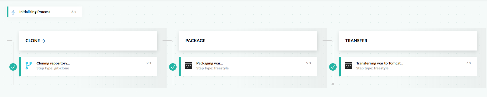 warfile through a freestyle step. - Transfers our application via scp to a Tomcat server through another freestyle step.