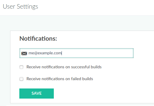 Configure the email notifications you want to receive for builds based on the build status: only successful, only failed, or for both successful and failed builds.