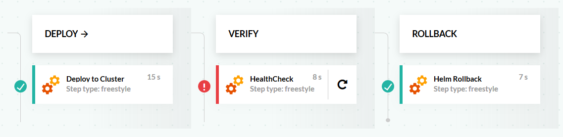 Alternatively, you can run any other freestyle step after a deployment such as health checks, metric collection, load testing, etc. that decides if a deployment if a Helm rollback is needed or not.
