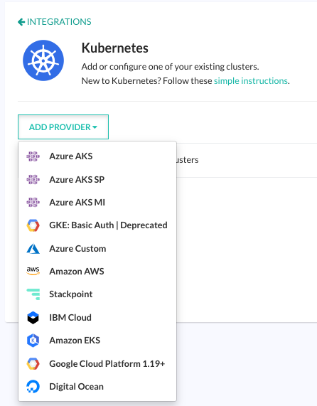 Once the cluster is connected, you can use any of the available deployment options for Kubernetes clusters. You also get access to all other Kubernetes dashboards such as the cluster dashboard and the environment dashboard.