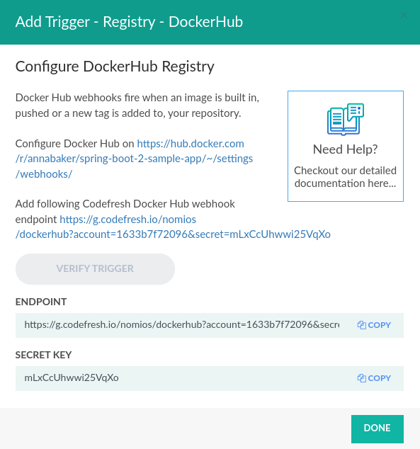 Add following Codefresh Docker Hub webhook endpoint