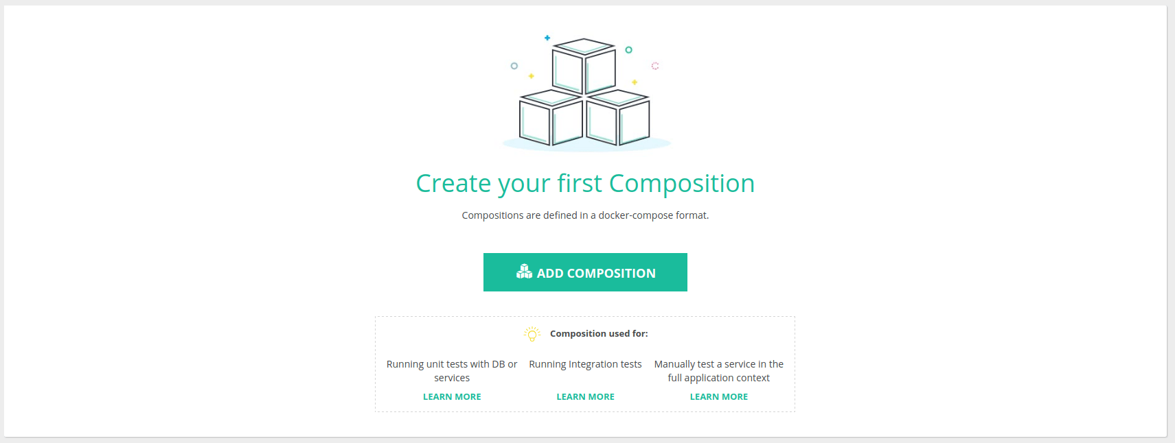 Compositions can be launched as part of a unit test step, an integration test step, or to run an image for manual testing. You can create compositions from scratch or import an existing docker-compose.yml file.