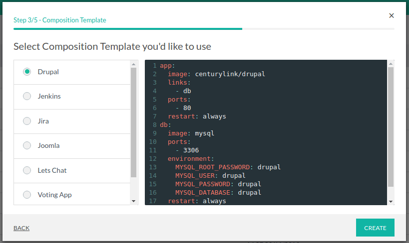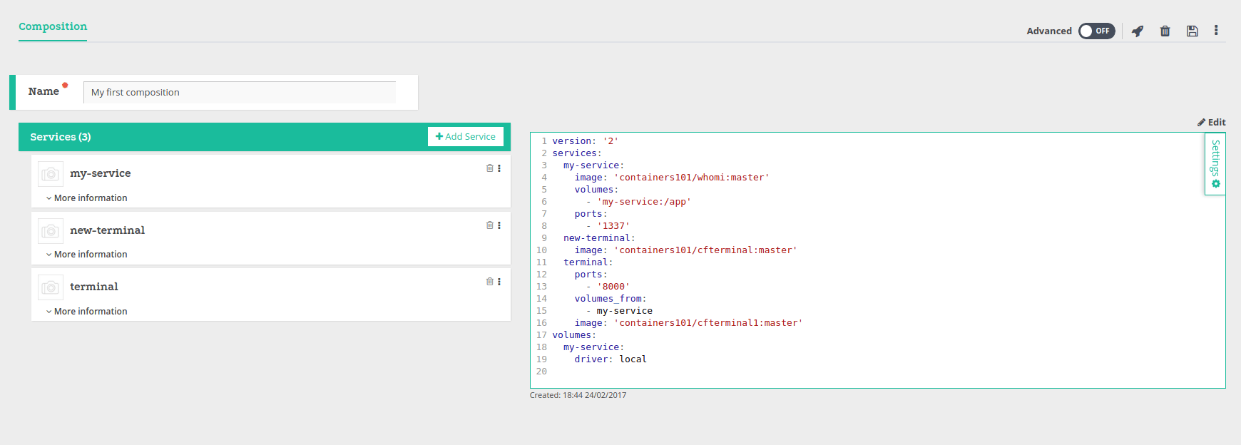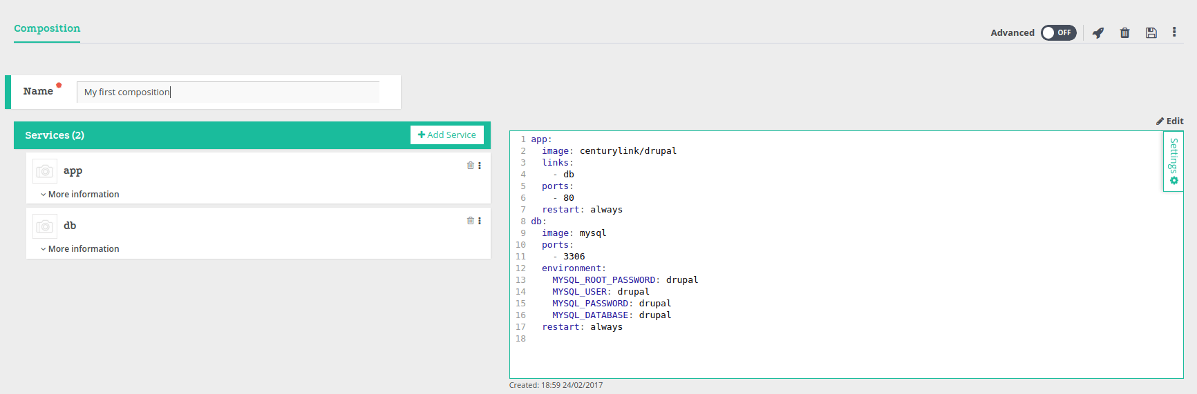 docker-compose.ymlfile. - Empty composition: Create a composition from scratch.