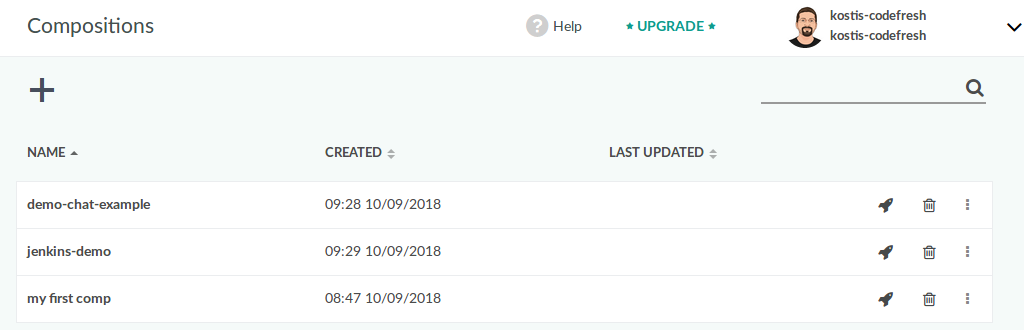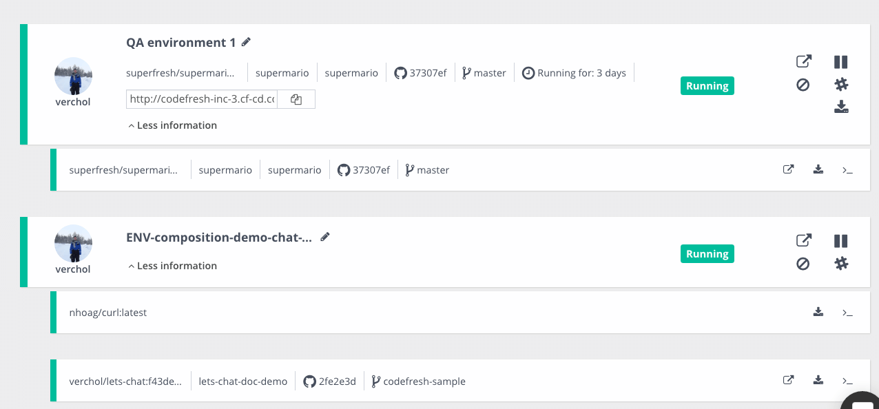 When you are ready with the composition, launch it to inspect your application. Launching a composition creates a temporary test environment in your Codefresh account that you can use to inspect your application.