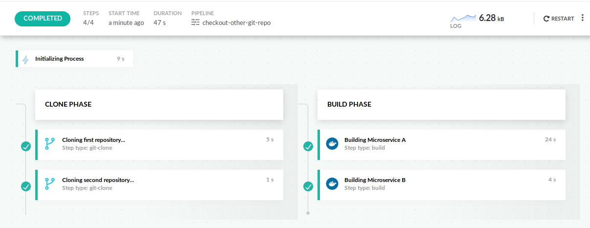 Here is a Codefresh pipeline that checks out two microservices from two different Git repositories.