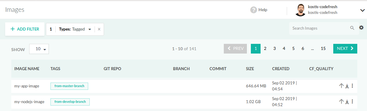 Notice that there are no explicit push steps in the pipeline, as all successful Codefresh pipelines automatically push to the private Docker registry.