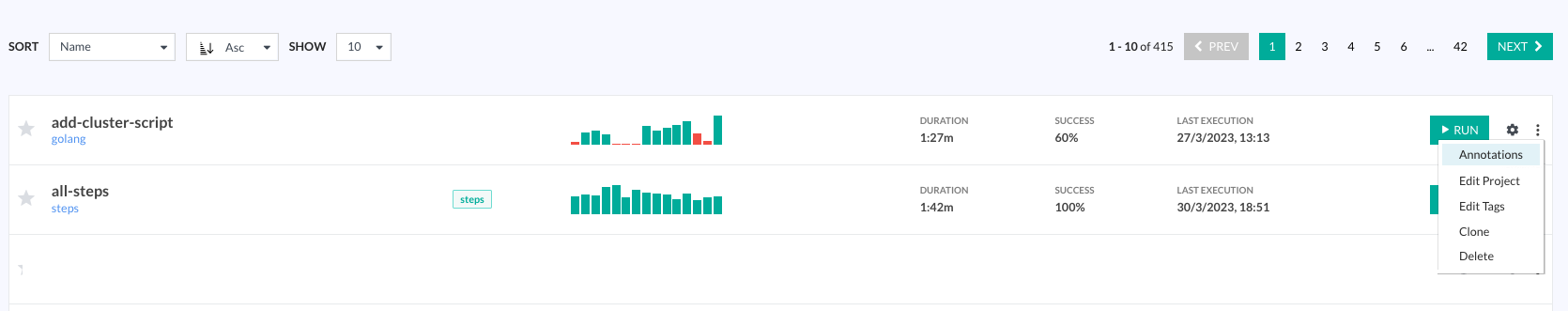 You can add annotations to projects, pipelines, builds, and Docker images. The method is identical for all entities. Every annotation has a name, type, and value.