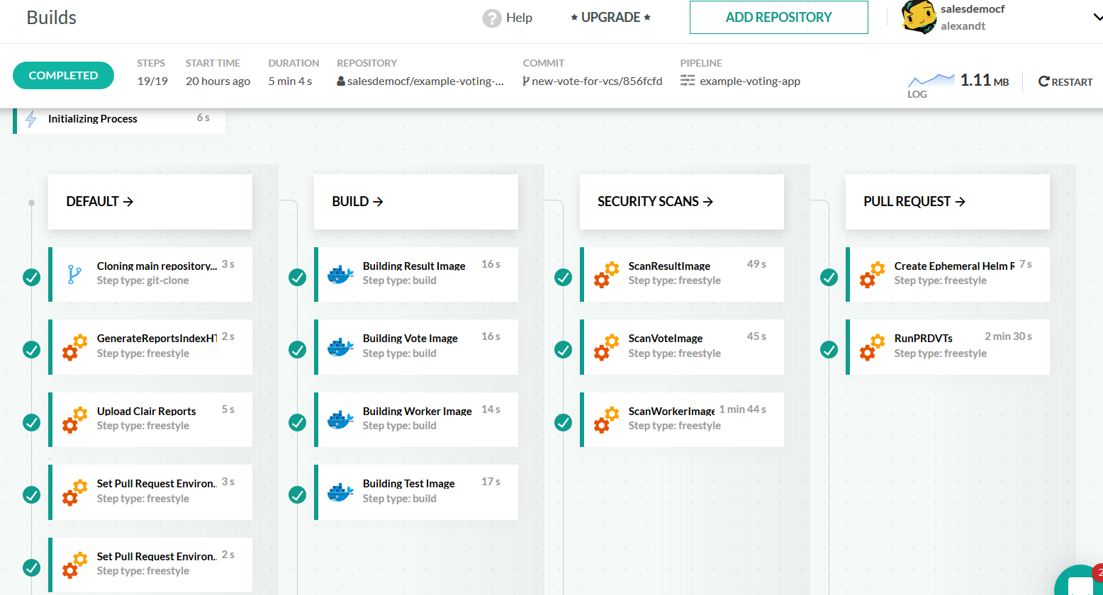 You should now start seeing the endless possibilities. You can mix and match any Docker image (either a public one or your own) to use a build context in your step. This makes Codefresh a future-proof solution for all build tools that exist now and all of them that will appear in the future. As long as there is a Docker image for a tool, Codefresh can use it in a pipeline without any extra configuration.