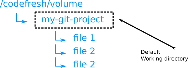 /codefresh/volumeis the shared directory for all steps/codefresh/volume/my-projectis where the source code exists. This is also the current working directory- Any other directory (e.g.
