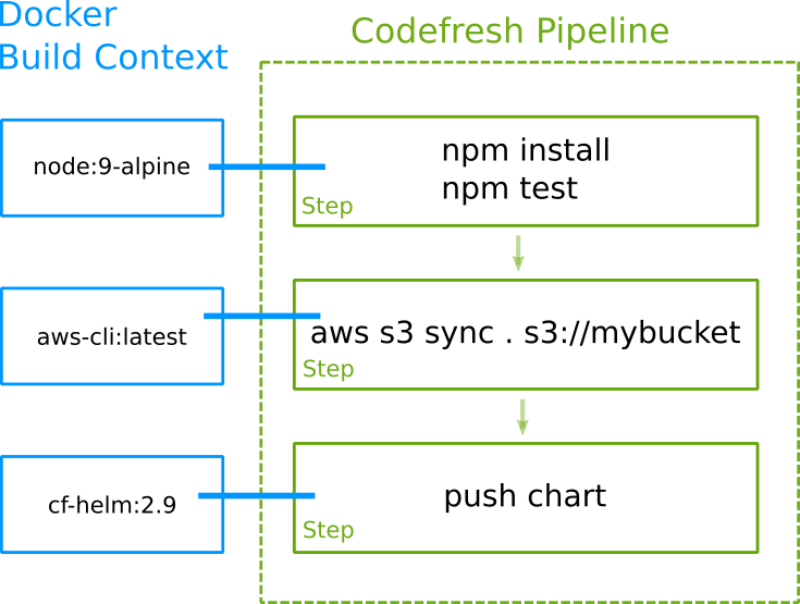 You don’t need to contact Codefresh and ask them to add the S3 executable on the build runners. You just use a prebuilt Docker image that contains it. The version used for Node is defined by you and if you wish to upgrade to another version you simply change the definition of the pipeline.