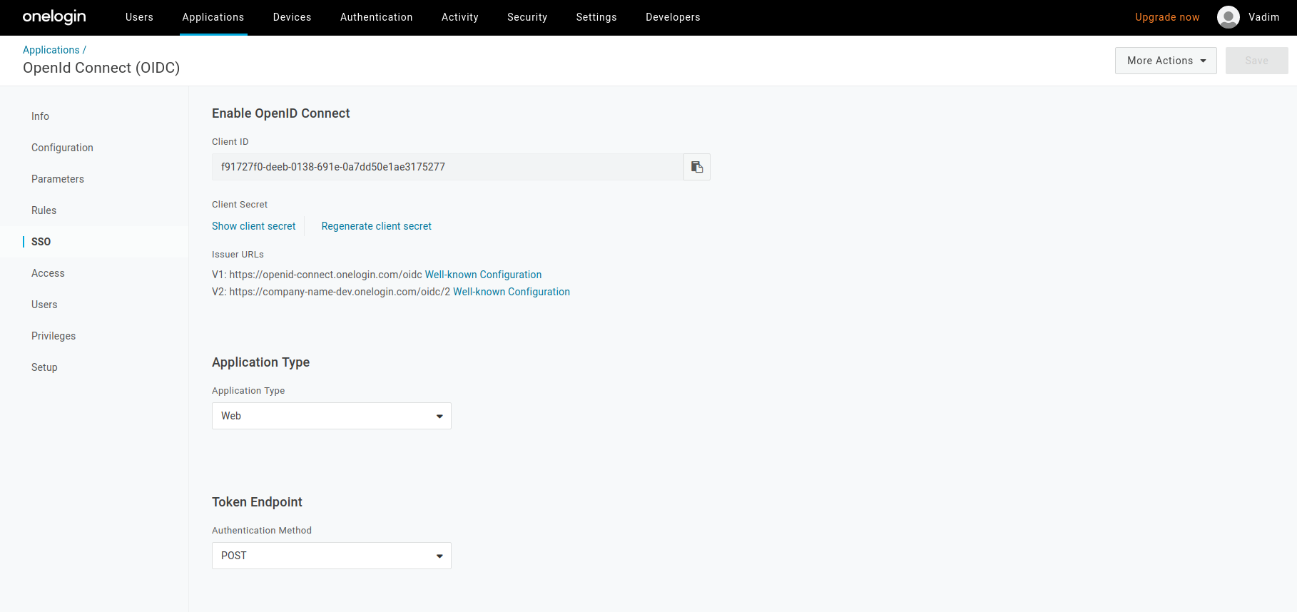 Set Application Type to Web, and Token endpoint Authentication to POST.
