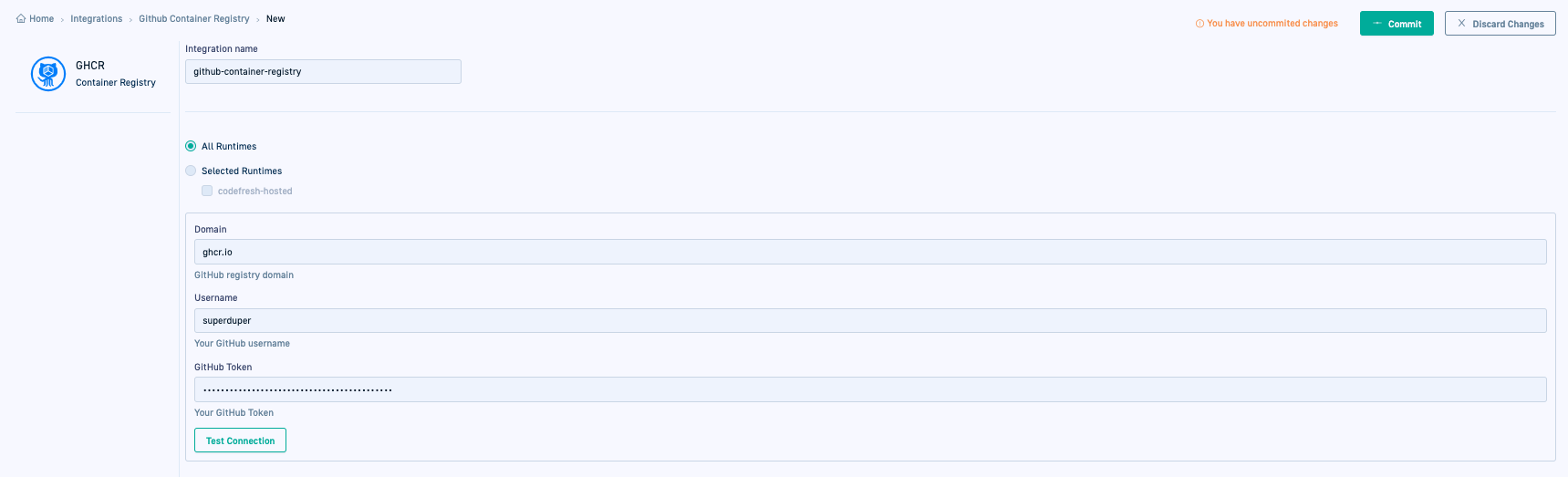 GitHub Container registry (GHCR)-GitOps integration settings in Codefresh