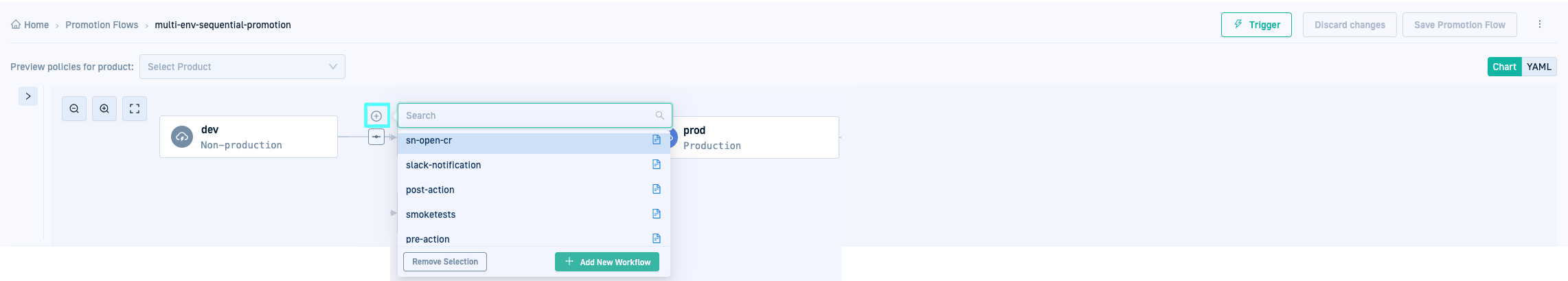 1. Open the Promotion Flow, for example,multi-env-sequential-promotion and click Trigger.