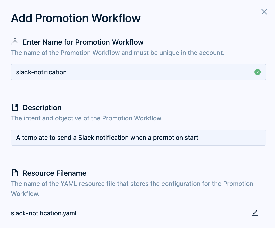 resources/control-planes/promotion-workflowsfolder in your Shared Configuration Repository. By default, this is identical to the Name of the Workflow. Leave as-is for the quick-start.