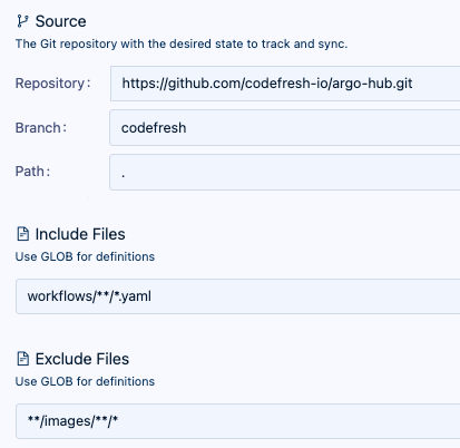 To use the ServiceNow Workflow Template, first add a Git Source to your GitOps Runtime that points to the Argo Hub library.