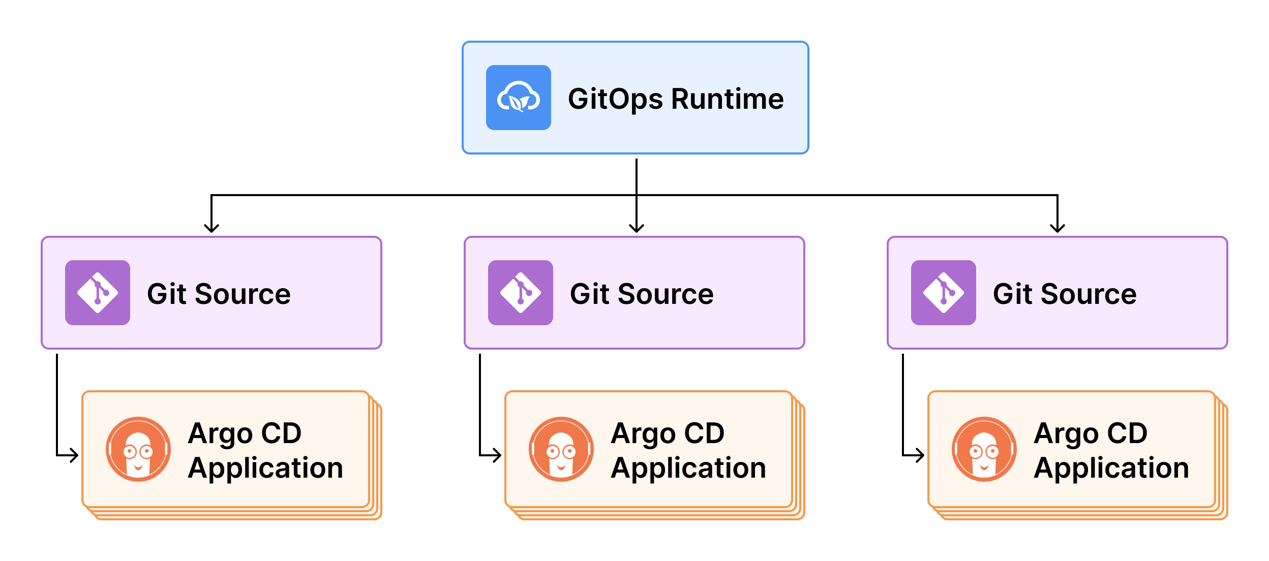 To understand how the Git Source interacts with GitOps Runtimes and Argo CD applications, explore Git Sources, GitOps Runtimes, Argo CD applications.