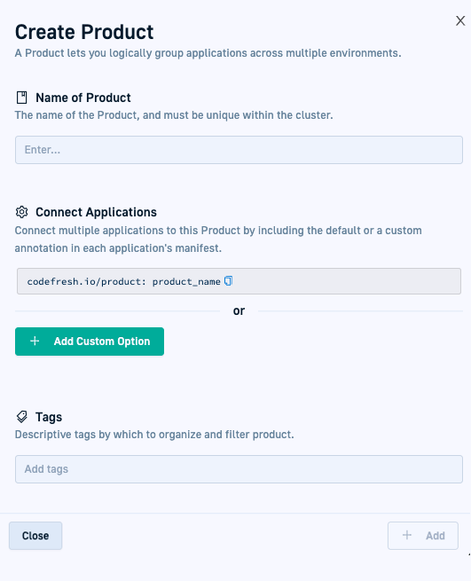There are two ways to create a product in Codefresh GitOps: