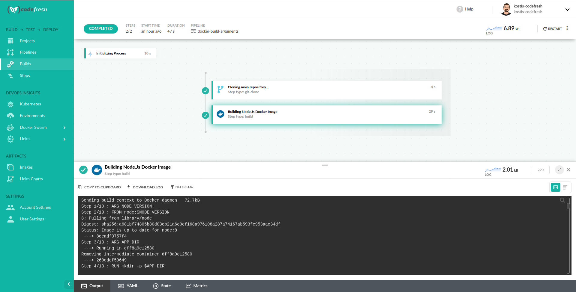 Building a Docker image that requires build arguments is very easy with Codefresh pipelines.