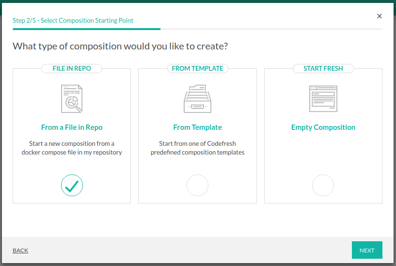 - From file in repo: Start a new composition from a Docker Compose file in your repository.