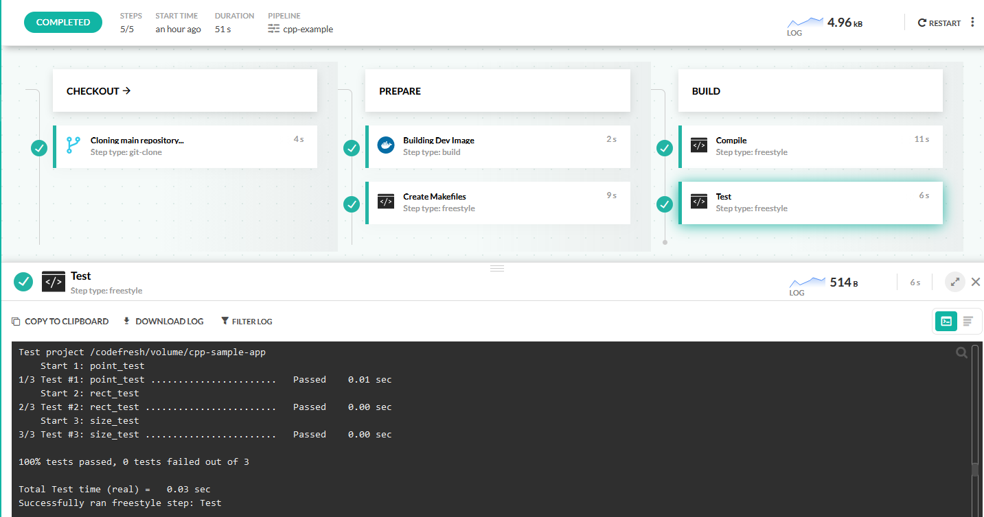Creating a CI/CD pipeline for C is very easy, because Codefresh can run any gcc image that you wish. Gcc docker images already contain the make utility but not the the cmake one. Therefore we will first create a Dockerfile that has g++, cmake and the boost libraries. You can follow the same pattern for other development tools that you use.