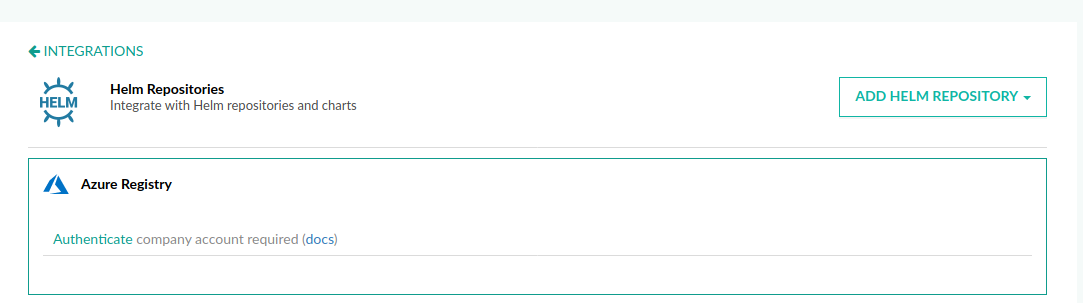 You can connect Azure Storage as a Helm repository in the integrations screen.