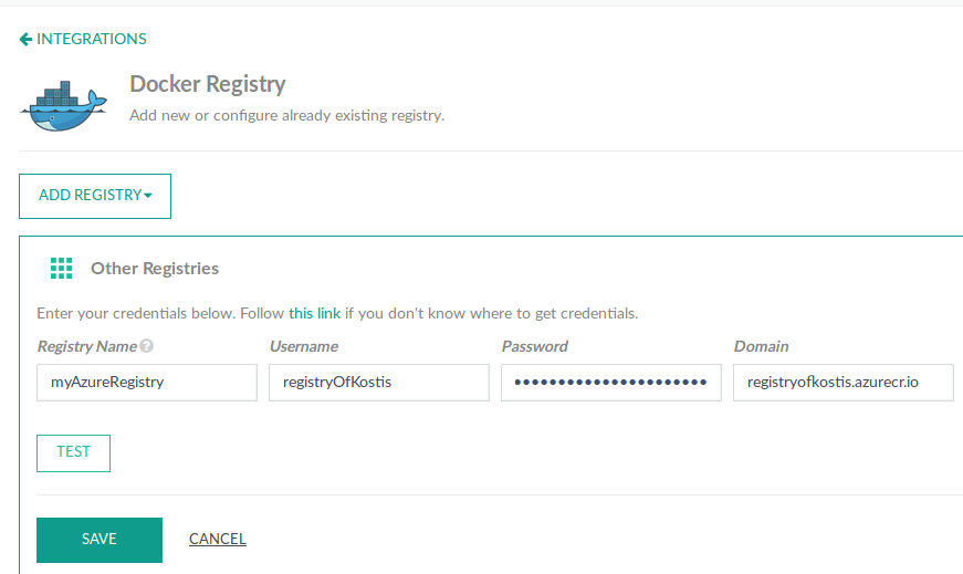Azure Docker registries are fully compliant with the Docker registry API that Codefresh follows. You can connect an Azure Registry like any other Docker registry.