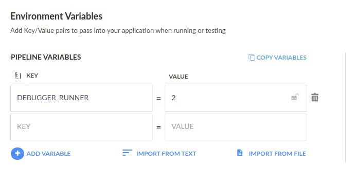 - 'DEBUGGER_RUNNER=2'Inserting breakpoints in the pipeline definition