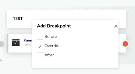 - Override - place a breakpoint after the step has initialized but before its execution (freestyle steps)