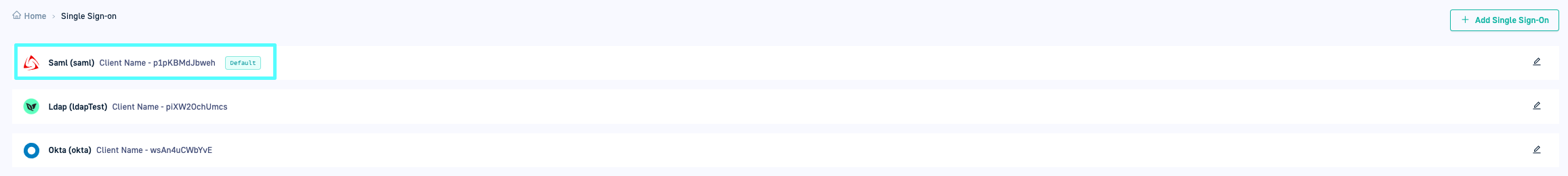 - From the list, select the SSO account to set as default and click the Edit icon on the right.