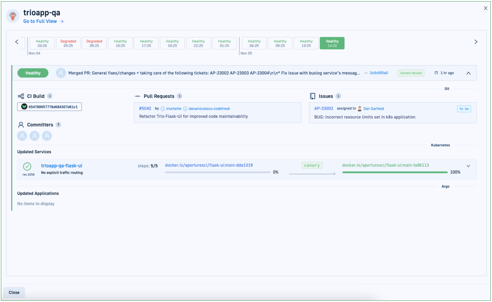 - Synchronize: Manually synchronize the application to expedite Git-to-cluster sync.