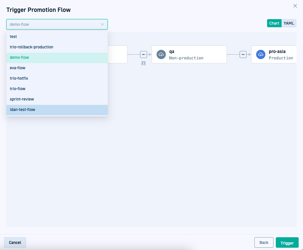- Click Trigger. A notification confirms that the promotion is triggered and a release is created.