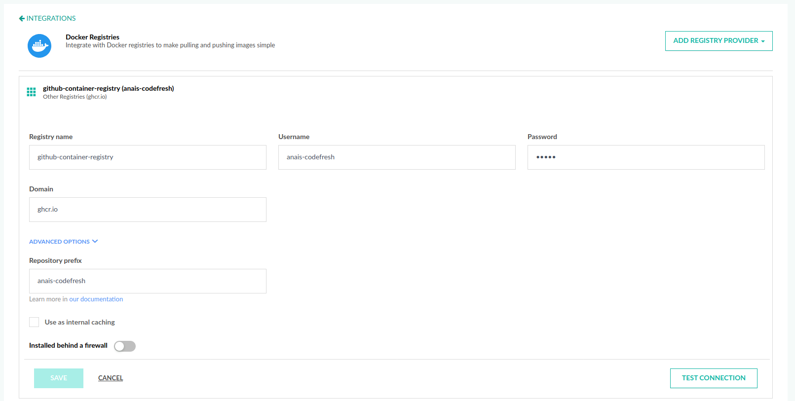 ghcr.io. - Expand Advanced Options and define the Repository Prefix as your GitHub username.