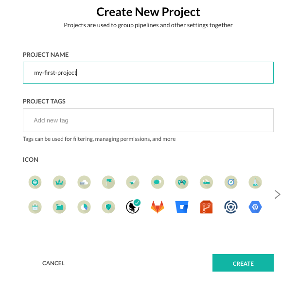 - Select any Icon you want. The icon is prefixed to the project name in the Projects page.