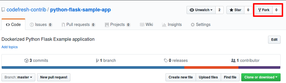 The example application already comes with its own Dockerfile. If your own application is not “dockerized” yet, first create a Dockerfile for it, and then move it into the Codefresh infrastructure.