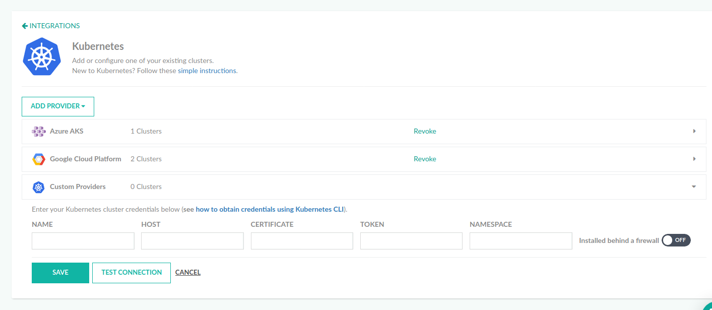 - To add any other type of cluster, outside of GKE, from the Add Provider list, select the Custom Providers.