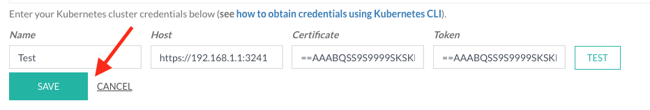After adding your cluster configurations and in case the test fails, click “Save” to get the error message back.