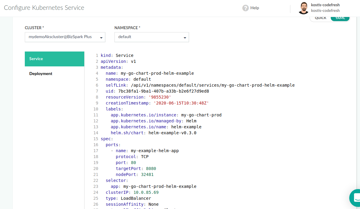 One of the easiest ways to deploy to Kubernetes is to use the Codefresh UI and manually deploy a docker image: