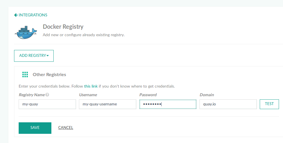 Configure Quay as your Docker registry provider.