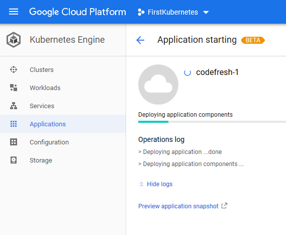 If you want to remove the Codefresh builder from your cluster, navigate to the “Applications” page in the Google Cloud console and click the Delete button.
