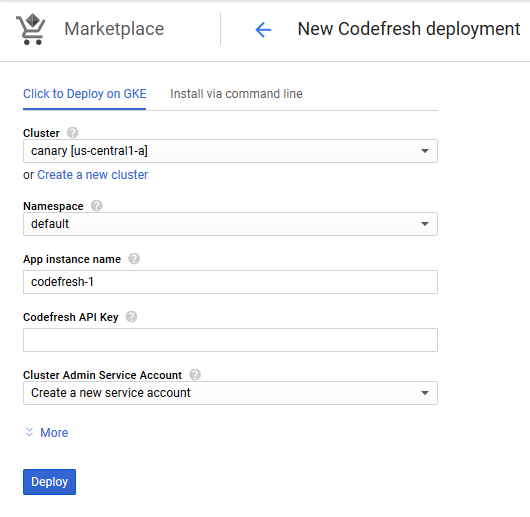 Instead of installing via the Google Cloud console, you can also install the Codefresh application using command line procedures.