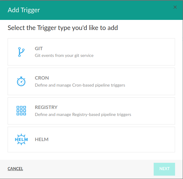 To add a new trigger, go to the Triggers tab in your pipeline editor and click the Add Trigger button. This will bring up the respective dialog where you are adding a new trigger.