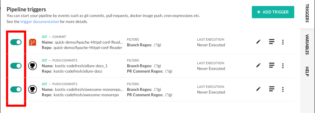 Then click the toggle switch on each trigger that you want to enable/disable. You can later enable the same trigger again by clicking the same switch.