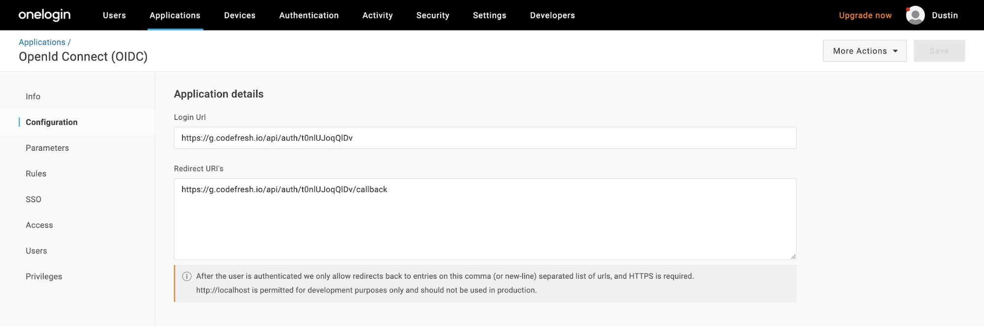 - Continue with Step 2: Configure SSO for OneLogin in Codefresh.