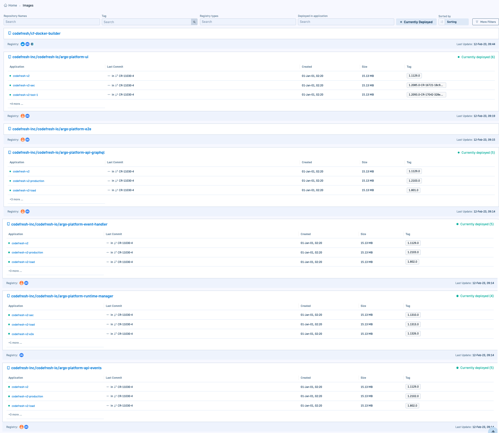 Connecting a GitHub Action, adds the CI information to images which are displayed in the Images dashboard, as in the example below.