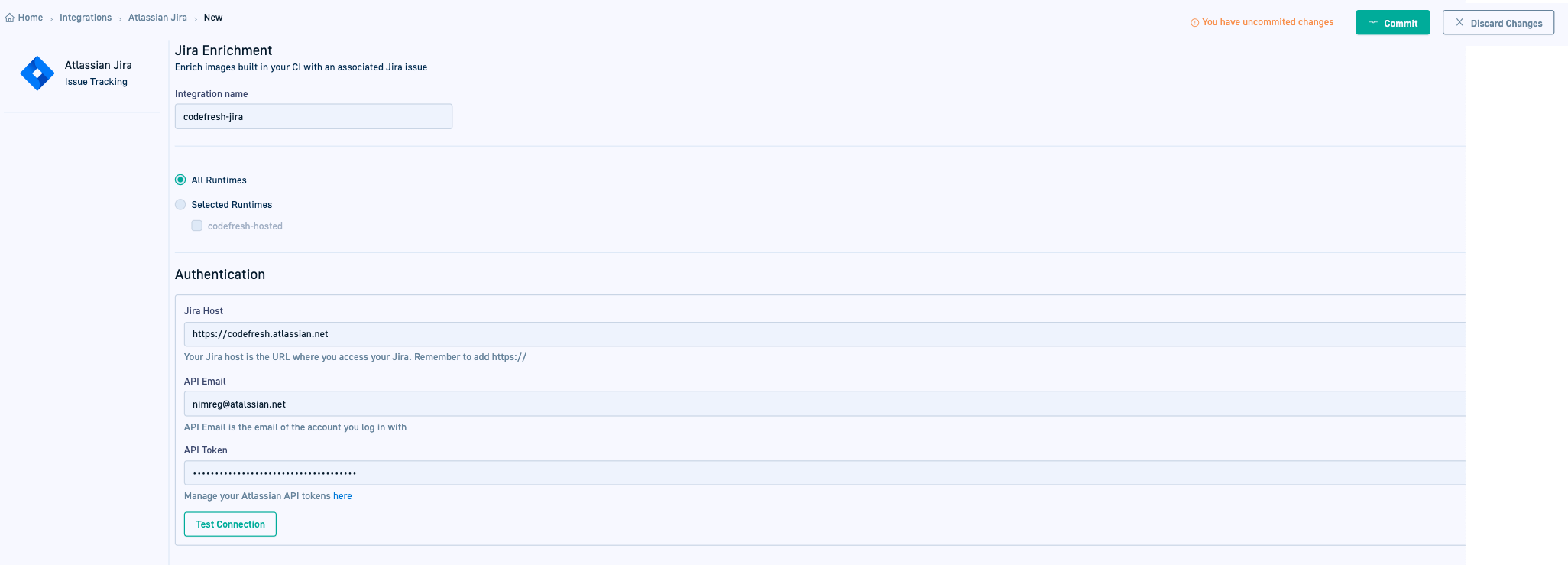 Codefresh uses the Secret Key stored in the runtime cluster to securely access Jira and retrieve the information.