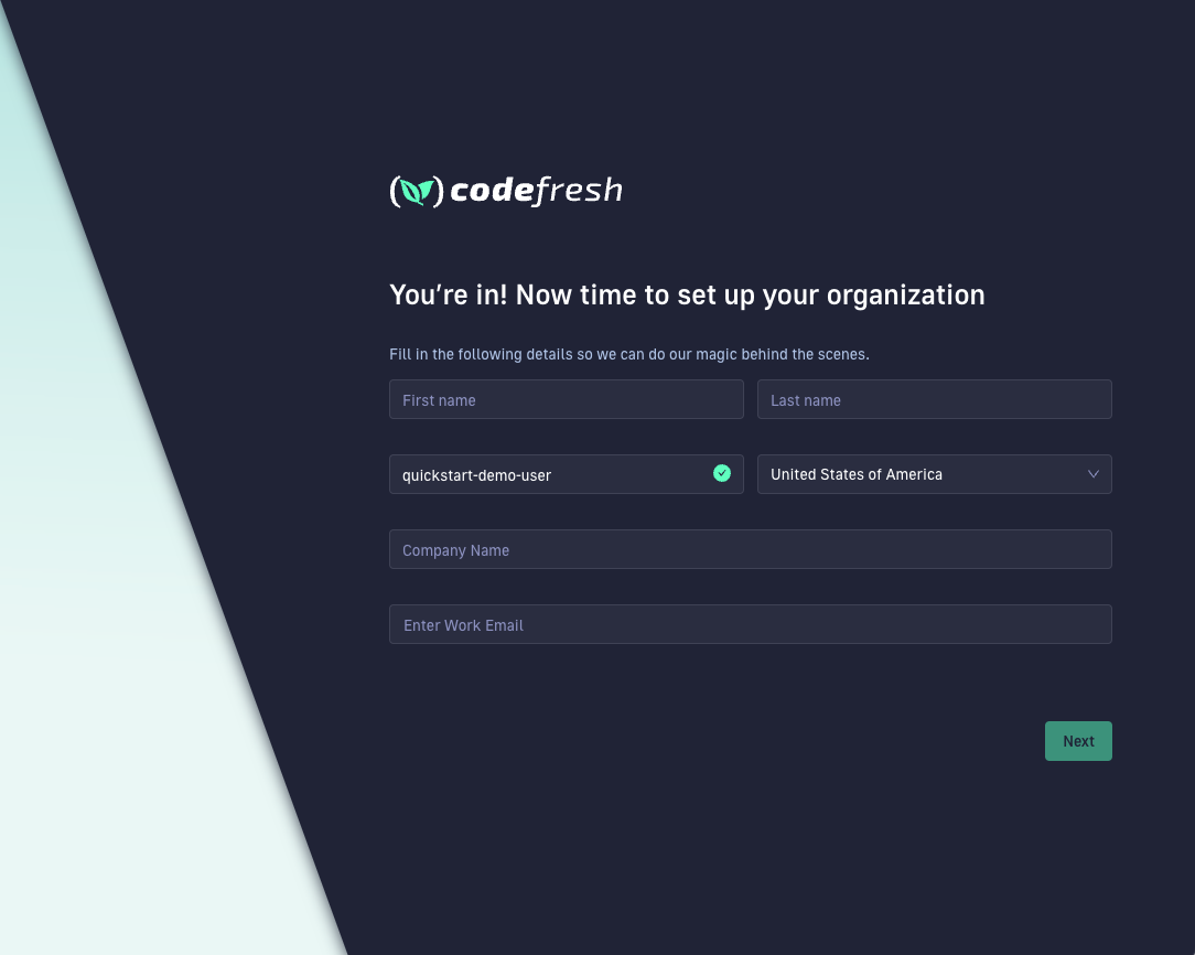 1. Go to the Codefresh Sign Up page.