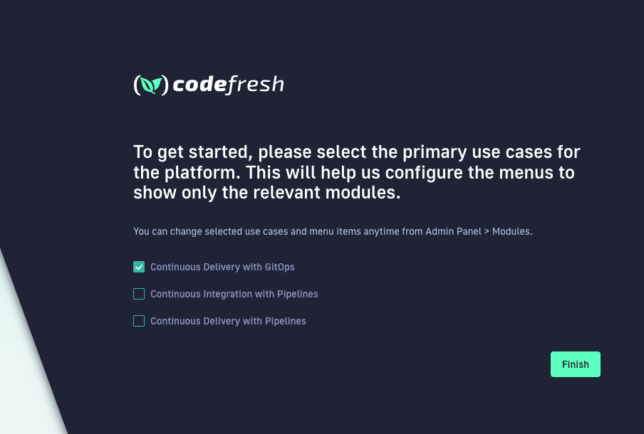 In this case, you’ll select Continuous Delivery with GitOps and then click Finish.