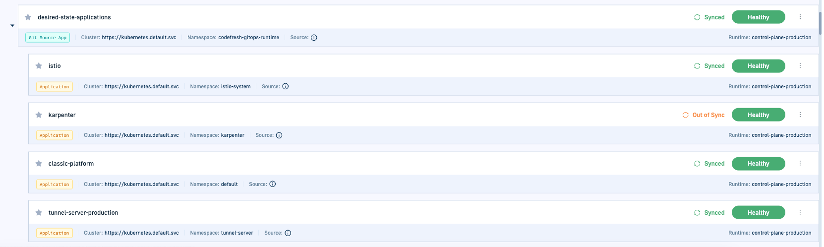- Manifests of Argo CD applications synced to a Restricted Git Source are deployed to a user-defined namespace, not to the Runtime’s namespace.