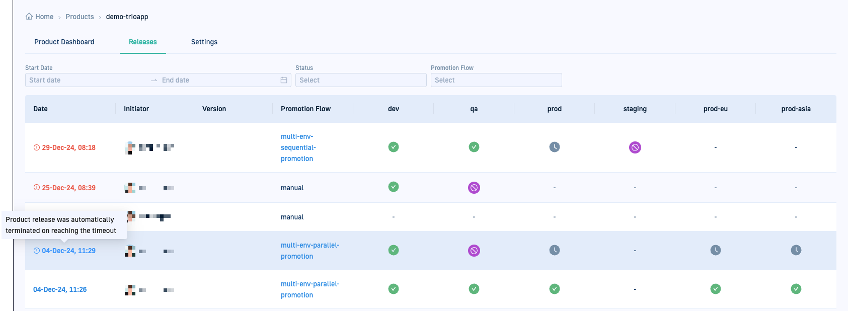 - Initiator: The name of the user who initiated the Promotion Flow that triggered the release is now displayed, helping with better accountability.