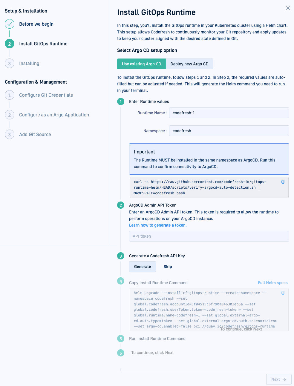 For details, see Installing Runtime with existing Argo CD.